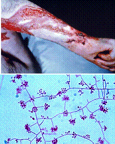 Zycomycosis | - Nhiễm trùng mucorale gây ra các mảng, mụn mủ, abces và các vết loét.