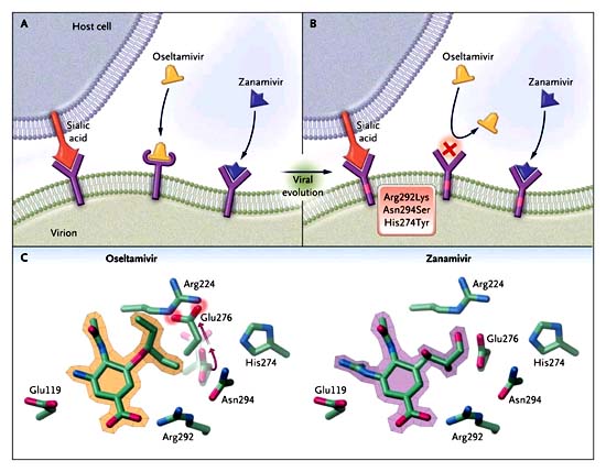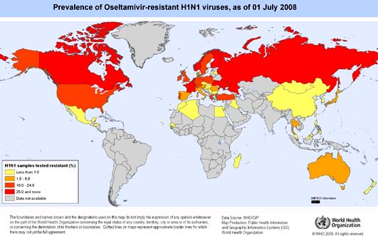 WHO đã nhận được một vài báo cáo từ các Trung tâm cúm quốc gia (National Influenza Centres_NIC) ở khu vực nửa bán cấu bắc liên quan đến virus cúm A (H1N1) kháng với oseltamivir trong thời gian đầu của cúm mùa 2008-2009 (tuần 41-44). Trong số các virus cúm A(H1N1) đượcthử nghiệm, 13/14 ca ở Anh, 1/1 ca ở Israel, 1/1 ở Ghana và 1/1 ở Canada có xuất hiện đột biến neuramidasse đặc hiệu (specific neuraminidase mutation) tại H275Y; số mã hóa theo trình tự của N1) liên quan đến kháng thuốc oseltamivir.