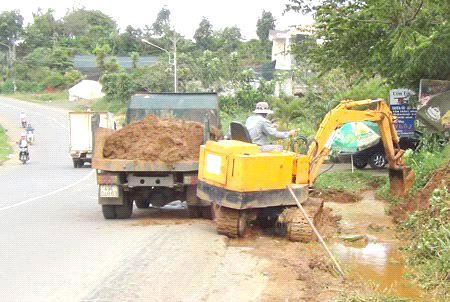 Nước đọng ở cạnh đường giao thông
