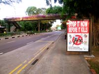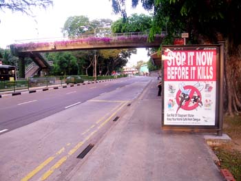 Khẩu hiệu "Stop it now before it kills" về phong chống bệnh sốt xuất huyết đặt ngay trên đại lộ Singapo(ảnh :vsrqn) |