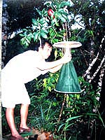 Cán bộ điều tra đặt bẫy ngoài nhà để thu thập muỗi |