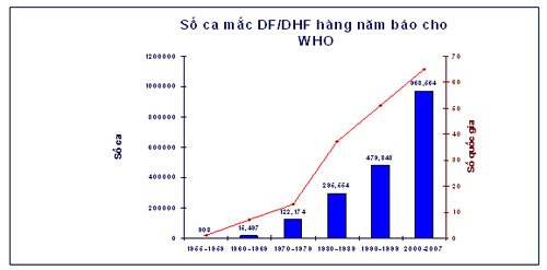 Biểu đồ 1. Số ca mắc SXH trên thế giới từ năm 1955- 2007 (WHO, 2009) |