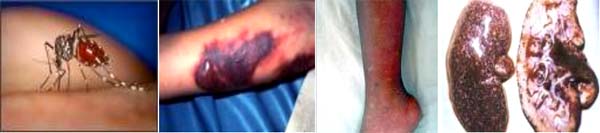 - ­ !important; Xuất huyết (dấu dây thắt dương tính hoặc xuất huyết tự nhiên như chấm xuất huyết dưới da, chảy máu mũi, chảy máu nướu răng, xuất huyết tiêu hóa, rong kinh).