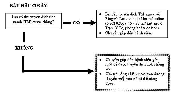 - Nếu tuyến y tế cơ sở không có khả năng truyền dịch thì chuyển gấp bệnh nhân đến bệnh viện để được truyền dịch chống sốc.