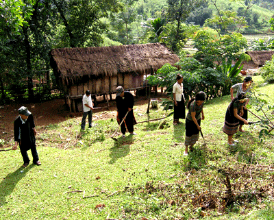 Phát quang bụi rậm, vệ sinh môi trường thường xuyên để ngăn chặn nguồn lây bệnh sốt xuất huyết |