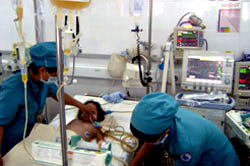 Phân tích số liệu thống kê về tình hình bệnh tật trẻ em tại Bệnh viện Nhi Đồng 1, tháng 6/2009 cho thấy: Các bệnh tay chân miệng, tiêu chảy cấp, tiêu đàm máu, viêm phổi, viêm tiểu phế quản, quai bị, trái rạ đều giảm từ 27% đến 51% so với tháng 5/2009. Tuy nhiên, do đang là mùa mưa nên theo chu kỳ, bệnh sốt xuất huyết tăng 30% về số lượt khám và 67% số trường hợp nhập viện. (Nguồn: Bệnh viện Nhi đồng 1) |