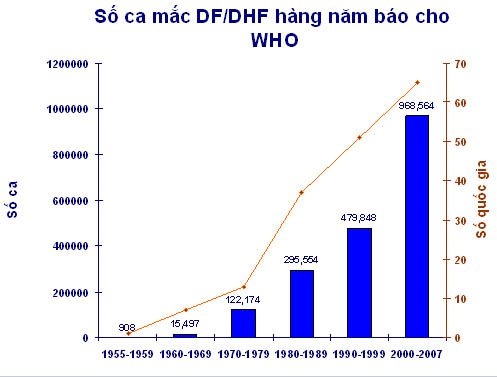 Số ca mắc SXHD trên thế giới từ năm 1955 – 2007(WHO, 2009) |