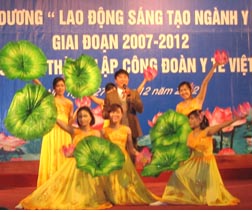 Sau những tiết mục văn nghệ đặc sắc của một số đơn vị trong ngành Y tế biểu diễn; BS Nguyễn Xuân Lãng, Quyền Chủ tịchCông đoàn Y tế Việt Nam đã đọc diễn văn chào mừng. Cách đây 55 năm, ngày 23/12/1957, Đại hội thành lập Công đoàn Y tế Việt Nam được tổ chức tại Thủ đô Hà Nội, đánh dấu bước ngoặt quan trọng, mở ra một thời kỳ mới của hoạt động công đoàn và phong trào công nhân viên chức lao động ngành Y tế. | Văn nghệ chào mừng Lễ kỷ niệm |