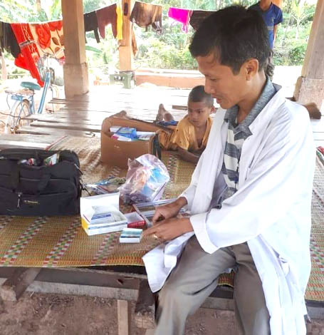 Y sỹ Cù Giặc Hiền trong một chuyến đi thực địa lấy lam máu tại cộng đồng
