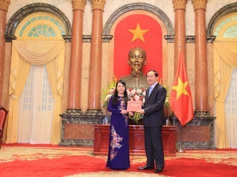 Chủ tịch nước tặng quà chân dung Hồ Chủ tịch cho các đại biểu y tế dự phòng