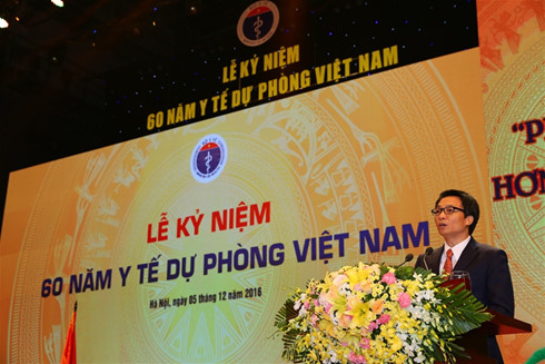 Phó Thủ tướng Vũ Đức Đam phát biểu tại Lễ kỷ niệm 60 năm y tế dự phòng Việt Nam