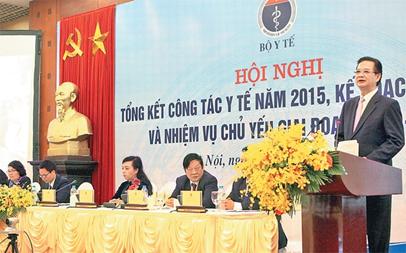Phát biểu chỉ đạo hội nghị, Thủ tướng Chính phủ đánh giá cao sự lỗ lực phấn đấu hoàn thành tốt nhiệm vụ của ngành y tế trong năm 2015 góp phần quan trọng vào nhiệm vụ chung phát triển của đất nước, nhất là công tác chăm sóc sức khỏe nhân dân giai đoạn 5 năm (2011-2015) trong bối cảnh ngành y tế luôn phải đối mặt với nhiều khó khăn và thách thức. Chỉ đạo triển khai kế hoạch y tế năm 2016 và các nhiệm vụ chủ yếu giai đoạn 2016-2020, ngành y tế cần tiếp tục tập trung nâng cao năng lực, chất lượng và hiệu quả khám chữa bệnh, chăm sóc sức khỏe ban đầu cho người dân người dân ở các tuyến gắn với giảm tải bệnh viện; chú trọng đào tạo đội ngũ thầy thuốc vừa có năng lực chuyên môn cao, vừa có y đức tốt; tăng cường ứng dụng công nghệ thông tin trong quản lý và thanh toán bảo hiểm y tế; củng cố phát triển y tế cơ sở, nâng cao chất lượng dân số, thực hiện bảo hiểm y tế toàn dân, tăng cường quản lý nhà nước về y tế và cải cách thủ tục hành chính; thực hiện tốt công tác y tế dự phòng, kiểm soát vệ sinh an toàn thực phẩm.