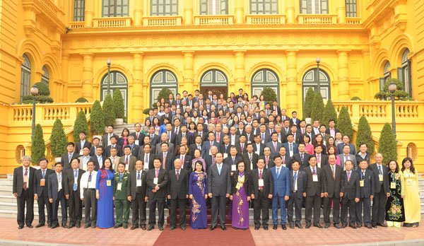 Các đại biểu tiêu biểu của ngành y tế chụp hình lưu niệm cùng Chủ tịch nước  |