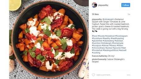Pippa Selby, một người theo chế độ ăn sạch trong 3 năm, bắt đầu 1 ngày với 1 tô trái cây lạnh được pha chế, trái cây tươi, yến mạch và bơ hạt. Bữa trưa có thể là một chén soup tự làm hoặc một salad trộn(mozzarella), buổi tối một chiếc bánh khoai tây ngọt hay một miếng thịt gà ta và khoai tây chiên tự làm. Các món ăn kiêng khác là món sinh tố cải xoăn, bơ xay, hạt chia và cây diệm mạch.