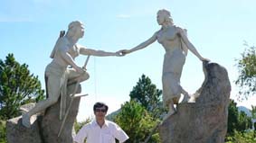 Đường lên ngọn núi Lang Biang | Tượng của chàng Lang và nàng Biang trên đỉnh núi |