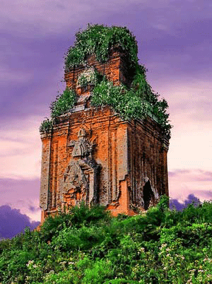 Ba tòa tháp đứng song song với chiều dài từ 29m - 36 m, cụm tháp Dương Long được xây dựng bằng gạch, cao nhất Đông Nam Á, có niên đại vào thế kỷ XII, nay thuộc huyện Tây Sơn (st) |