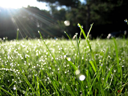 Hơi nước đọng thành hạt trên các lá cây, ngọn cỏ thường gọi là sương móc. Ảnh minh họa: internet |