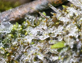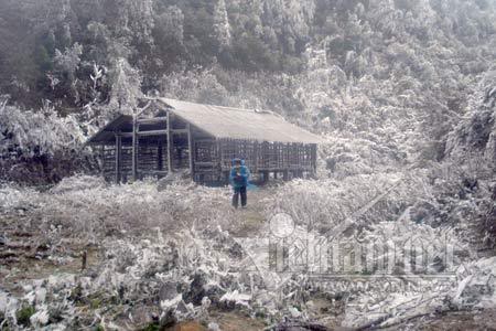 Sương muối kết thành những cục băng bám trên cây cỏ. Ảnh: Hoàng Hà. | Mù Cang Chải mùa sương giá (ảnh: vietnamnet) |