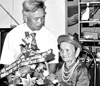 Lãnh đạo Đảng, chính quyền địa phương mừng thọ cụ bà Tôn Nữ Thị Quỳnh Anh tròn 100 tuổi. ảnh: NGUYỄN CÔNG HẬU |