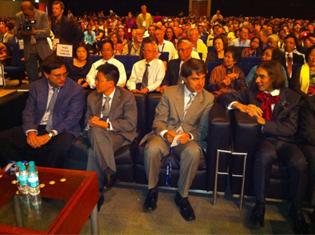 GS. Ngô Bảo Châu (thứ hai, bên trái) cùng các nhà Toán học quốc tế tại lễ khai mạc Đại hội Toán học thế giới tổ chức ở Hyderabad, Ấn Độ ngày 19/8/2010. (Nguồn: dantri.com.vn) |