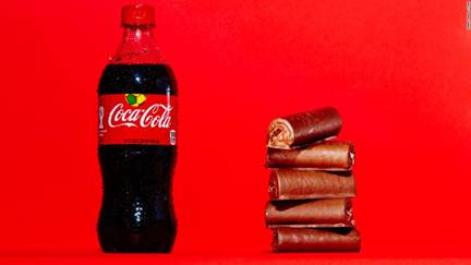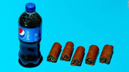 Soda: Pepsi: Một chai Pepsi khoảng 500g chứa 69g đường, mỗi chiếc bánh cuộn Debbie ước tính chứa 13g đường.