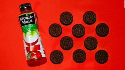 Nước ép trái cây: Minute Maid 100% Apple Juice: Chai nước ép trái cây táo này khoảng 430g chứa 49g đường, lượng đường của khoảng 10 chiếc bánh Oreo.