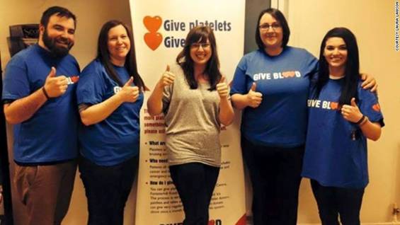 Lawson tổ chức một cuộc vận động hiến máu nhóm để những người khác cùng cô thực hiện điều này trong danh sách của cô