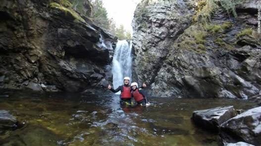 Lawson và chồng đi vượt thác, cần các kỹ năng leo trèo, nhảy, tụt xuống bằng dây thừng và bơi