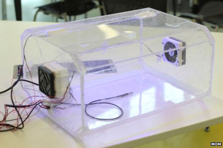 | Lồng ấp này có thể được cấp nguồn điện bởi một viên pin ô tô trong thời gian hơn một ngày |