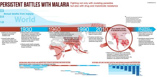 -1961-1965 Những công bố từ Colombia và Brazil về chủng P .falciparum kháng chloroquine, có những báo cáo tương tự ở vùng Đông Nam Á;