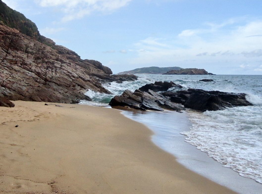 Bãi tắm này ghi dấu với du khách với vẻ đẹp của cung đường biển uốn lượn, cát trắng, biển xanh và vô số những tảng đá tròn trịa trên bờ.
