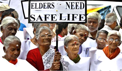 Phụ nữ cao tuổi tham gia đi bộ được tổ chức để đánh dấu Ngày thế giới nâng cao nhận thức về việc lạm dụng người cao tuổi tại Bangalore, Ấn Độ, 15/6/2011