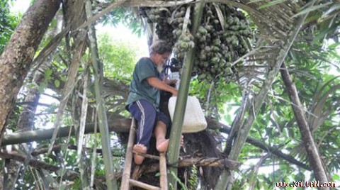 Lấy rượu đoác từ cây đoác, còn gọi là cây tà vạt (ảnh internet) |