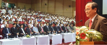 Chủ tịch UBND tỉnh Nguyễn Văn Thiện đọc diễn văn tại Lễ kỷ niệm 35 năm Ngày giải phóng tỉnh Bình Định. Ảnh: Văn Lưu-baobinhdinh online |