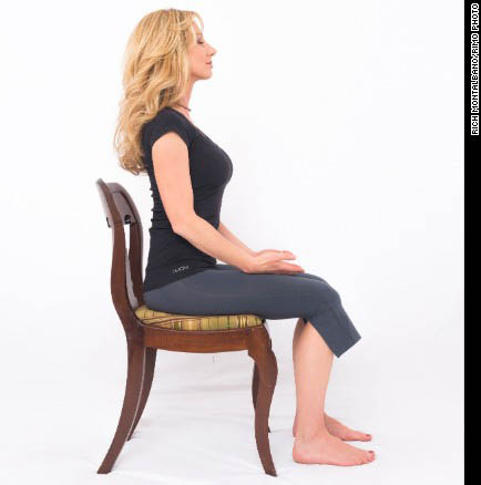 Không phải mọi tư thế của yoga đều đòi hỏi bạn phải rời khỏi ghế ngồi. Điều quan trọng là phải tập luyện nhận thức tư thế ngồi của bạn và tránh nghiêng sang một bên có thể gây đau ngay tại bàn làm việc.