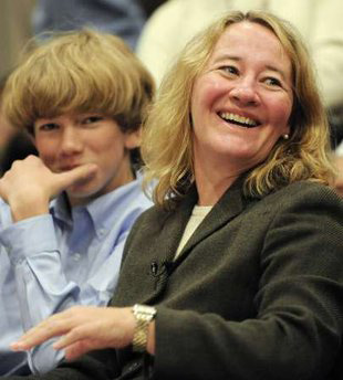 Carol Greider, giáo sư sinh học phân tử và di truyền của Đại học Y khoa Johns Hopkins (Mỹ) cùng con trai. Ảnh: Reuters. |