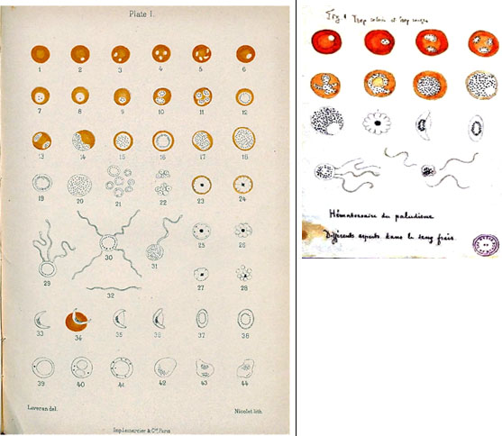 Những hình ảnh ghi chép lại của Laverantrong phòng thí nghiệm còn ghi lại khi nghiên cứu
