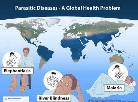 Giải thưởng Nobel y học năm 2015 dành cho 3 nhà khoa học có nhiều công lao đóng góp trong lĩnh vực chống các bệnh ký sinh trùng phổ biến trong cộng đồng. Ông William C. Campbell thuộc Đại học Drew ở New Jersey của Mỹ và ông Satoshi Omura thuộc Đại học Kitasato của Nhật Bản phát triển thuốc Avermectin điều trị bệnh mù lòa đường sông, giun chỉ bạch huyết và các bệnh nhiễm loại giun tròn khác. Bà Youyou Tu thuộc Học viện Y học cổ truyền Trung Quốc phát hiện ra thuốc Artemisinin hiệu lực cao để điều trị bệnh sốt rét có hiệu quả.