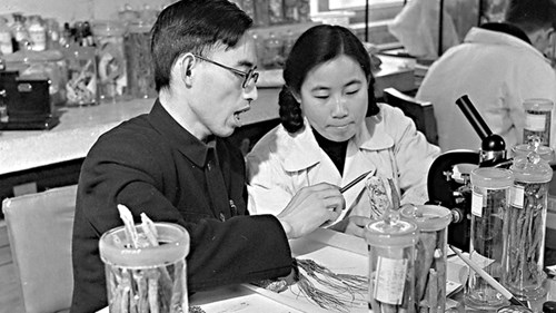 Giáo sư Youyou Tuthời trẻ và đồng sự trong phòng nghiên cứu