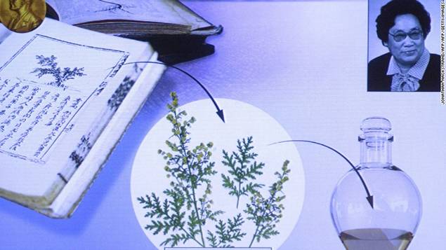 Giáo sư Youyou Tu, khi vừa mới tốt nghiệp khoa dược tại Đại học Y khoa Bắc Kinh vào những năm 1960, đã nghiên cứu thuốc thảo dược cổ truyền và phát hiện ra biện pháp điều trị tiềm năng này. Bà đã lấy một chiết xuất từ thực vật có tên là Artemisia annua hoặc Sweet wormwood (cỏ ngải cứu ngọt) và bắt đầu thử nghiệm nó trên ký sinh trùng sốt rét. Các thành phần, sau này gọi là Artemisinin, có hiệu quả cao trong việc tiêu diệt ký sinh trùng sốt rét.