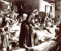 Những năm 1854-1855, chiến tranh Crime nổ ra, bà cùng 38 phụ nữ Anh khác được phái sang Thổ Nhĩ Kỳ để phục vụ các thương binh của quân đội Hoàng gia Anh. Tại đây, bà đưa ra lý thuyết về khoa học vệ sinh trong các cơ sở y tế và sau 2 năm bà đã giảm tỷ lệ tử vong do nhiễm khuẩn từ 42% xuống còn 2%.