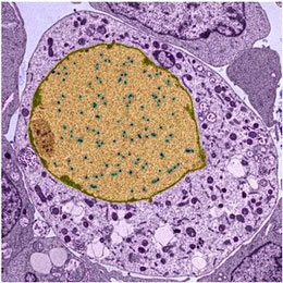 | Các hạt virus trong nhân của tế bào ung thư bạch cầu |