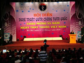 Thực hiện kế hoạch số 1082/KH-BYT ngày 13/11/2009 của Bộ Y tế về tổ chức Hội diễn nghệ thuật quần chúng ngành y tế chào mừng kỷ niệm 55 Ngày Thầy thuốc Việt Nam (27/2/1955-27/2/2010), các khu vực trong cả nước đã tổ chức và lựa chọn được các tiết mục xuất sắc tham dự Chung kết Hội diễn ngành Y tế toàn quốc tại Cung văn hoá Hữu nghị Việt Xo-Hà Nội ngày 23/2/2010.