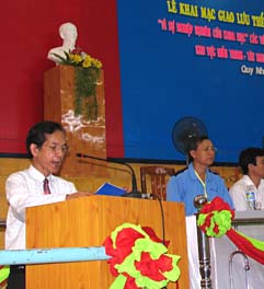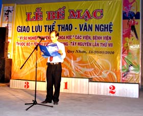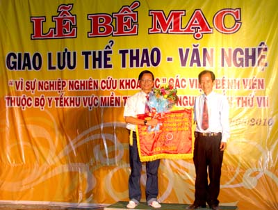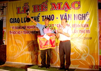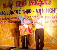 Đồng chí Lê Hữu Lộc-Phó Chủ tịch UBND tỉnh Bình Định đã trao giải Nhất toàn đoàn cho Viện Sốt rét-KST-CT Quy Nhơn ảnh: Võ Thanh Tuấn |