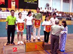 - 3 giải ba (đôi nam nữ bóng bàn, đơn nữ cầu lông và đôi nam cầu lông lứa tuổi dưới 30).