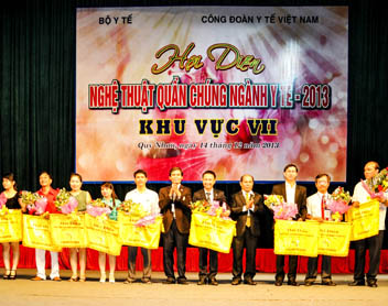 Dược sỹ Nguyễn Văn Quyền và TS. Nguyễn Văn Chương tặng cờ cho các đơn vị tham gia Hội diễn   |