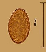 Những con sán trưởng thành sống từng cặp hoặc từng nhóm, cụm bên trong một vỏ xơtrong nhu mô gan của vật chủ chính. Các sán trưởng thành đẻ trứng mà sau đó chúng ta có thể thu được bên trong khoang của vỏ bao gan này. Vỏ (capsule) chứa một lượng lớn trứng và sau đó đổ vào trong đường dẫn mật. Các trứng thải qua đường mật vào trong hệ mật, vào ruột non và theo phân của vật chủ ra ngoài.Trứng theo phân ra ngoài và thải vào trong môi trường và thực hiện quá trình đóng phôi bên ngoài môi trường. Một vài yếu tố lý hóa, đặc biệt là nhiệt độ môi trường, độ ẩm và hàm lượng oxy ảnh hưởng lên sự hình thành phôi. Trong suốt quá trình hình thành phôi của trứng, một ấu trùng phát triển gọi là miracidium phát triển từ các tế bào mầm.