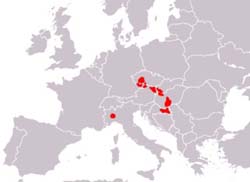 Kể từ mùa thu năm 2000, sán F. magna đã được tìm thấy ở lãnh thổ Úc, đông của nước Áo. Năm 2000-2001, tỷ lệ mắc bệnh tại Úc và Áo là 66.7 %. Sự xuất hiện của sán khổng lồ châu Mỹ được báo cáo ở Croatia vào tháng 1.2000. Tỷ lệ mắc bệnh fascioloidosis trên các hươu, nai hung ở Hungary là 21.1-60.7 % từ năm 1998-2005. Trong quá trình giải phẩu tử thi của 459 gan hươu (sử dụng kỹ thuật Egri), số lượng sán trên mỗi vật chủ từ 1-138 con từ giai đoạn năm 1998-2005. Liên quan đến vùng lưu hành F. magna ở khu vực phân ranh nước của Danube River watershed, thì cũng có xuất hiện loài sán này chứ không nhất thiết từ trong quá khứ. Nguồn gốc của quần thể sán khổng lồ F. magna ở các rừng ngập lũ của Danubian ở trung Âu vẫn chưa tìm hiểu rõ ràng.
