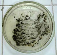 Hình 4: Nấm Cladosporum có sắc tố màu vàng nâu xen .lẫn với nấm C. albicans được nuôi cấy từ bệnh phẩm | Hình 5: Nuôi cấy bệnh phẩm, Cladosporum và Candida mọc sau 24 giờ và Cladosporum mọc sau 1 tuần. |