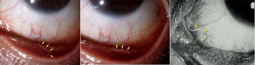 Sự có mặt của giun có kích thước 1cm, dài, màu trắng kem, nhỏ, hình sợi chỉ, di động (giun trưởng thành), nằm bên trong màng nháy hoặc trong film nước mắt;